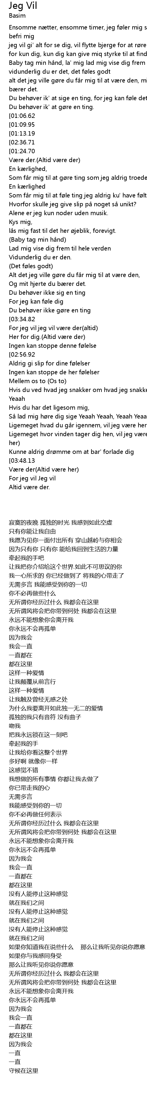 | [03:38.09][03:34.82][02:44.74][02:41.40] | For jeg vil jeg vil, (Være der) |