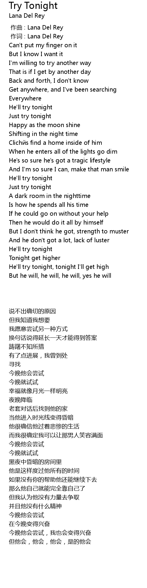 | [00:00.00] | 作曲 : Lana Del Rey |