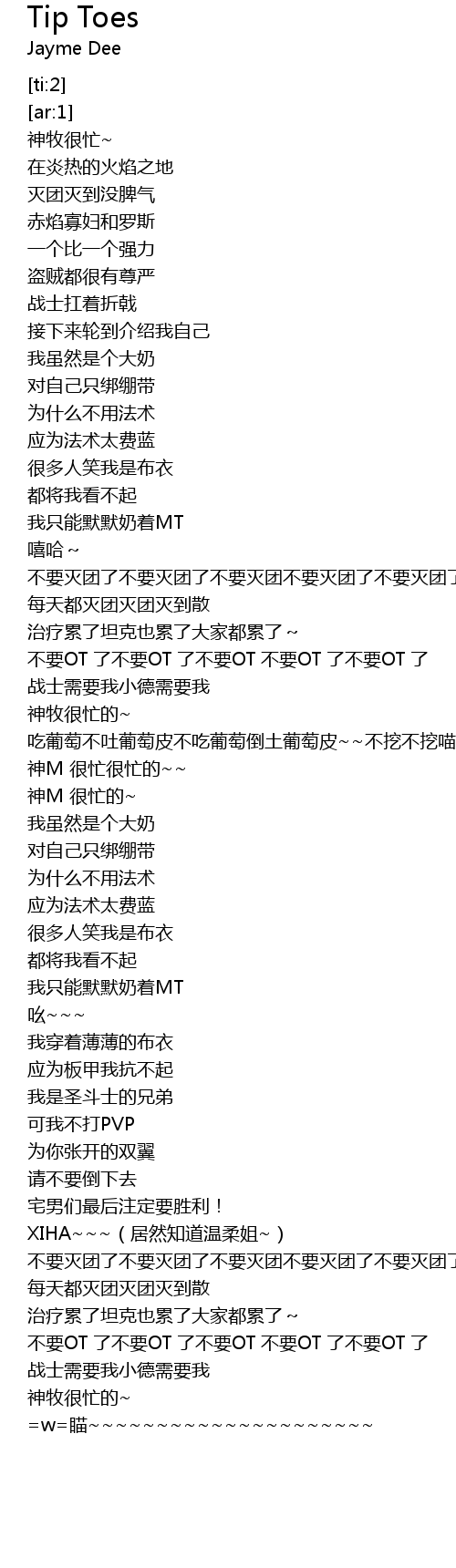 | [02:04.959] | 不要OT 了不要OT 了不要OT 不要OT 了不要OT 了 |