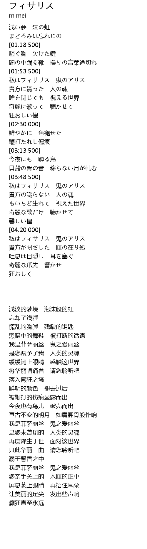 | [03:49.125] | 我是菲萨丽丝 鬼之爱丽丝 |