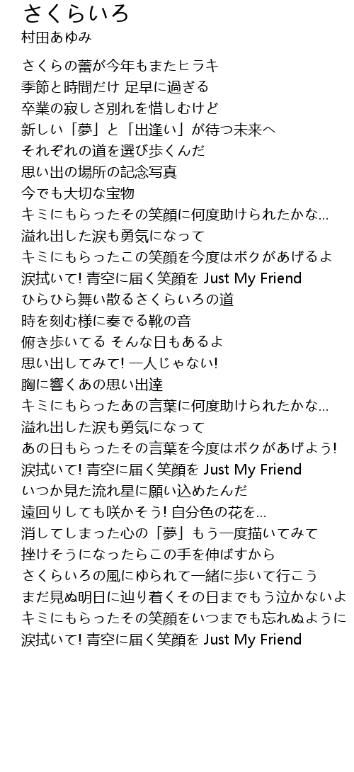 | 涙拭いて! 青空に届く笑顔を Just My Friend | |