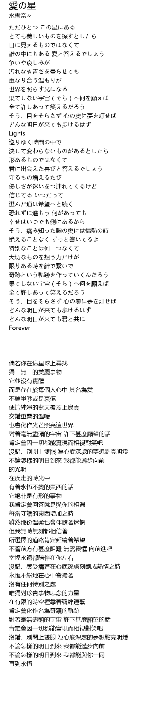 | [03:33.539] | 對著毫無盡頭的宇宙 許下甚麼願望的話 |