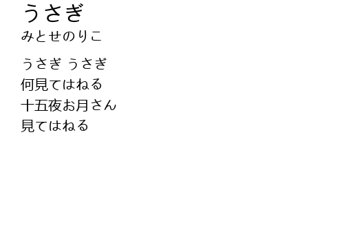 | [00:00.490] | うさぎ うさぎ |