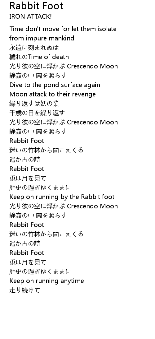 | [01:56.62] | Keep on running by the Rabbit foot |