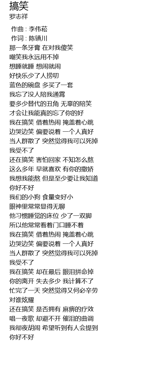| [02:53.92] | biān kū biān xiào piān yào shuō zhe yí ge rén zhēn hǎo |