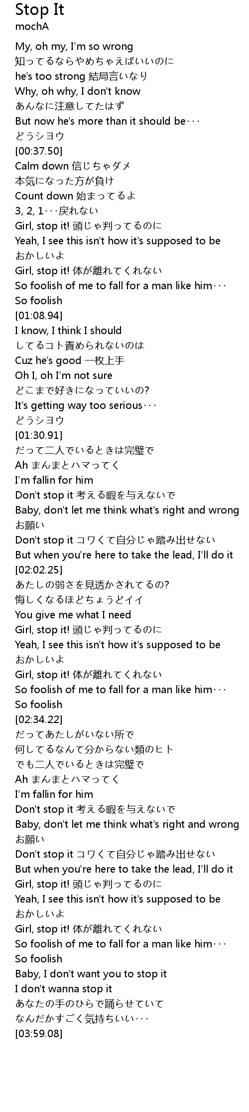 | [00:58.31] | Girl, stop it! 体が離れてくれない |