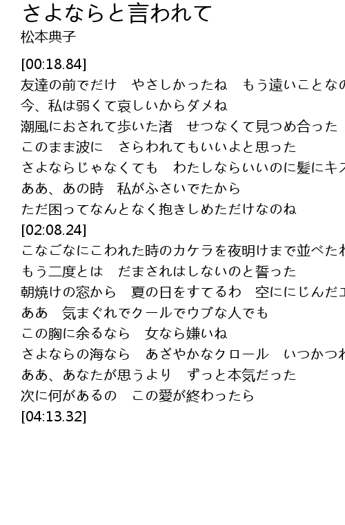 | [00:28.84] | 友達の前でだけ やさしかったね もう遠いことなのね |