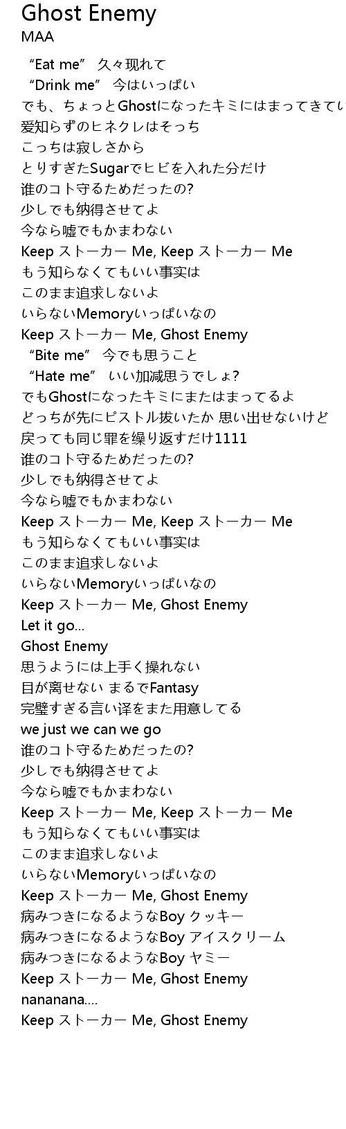 | [02:18.50] | Keep ストーカー Me, Ghost Enemy |