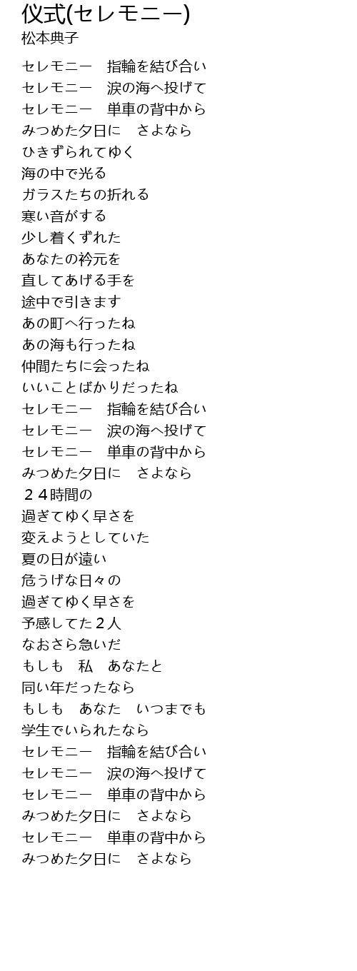 セレモニー 涙の海へ投げて |
