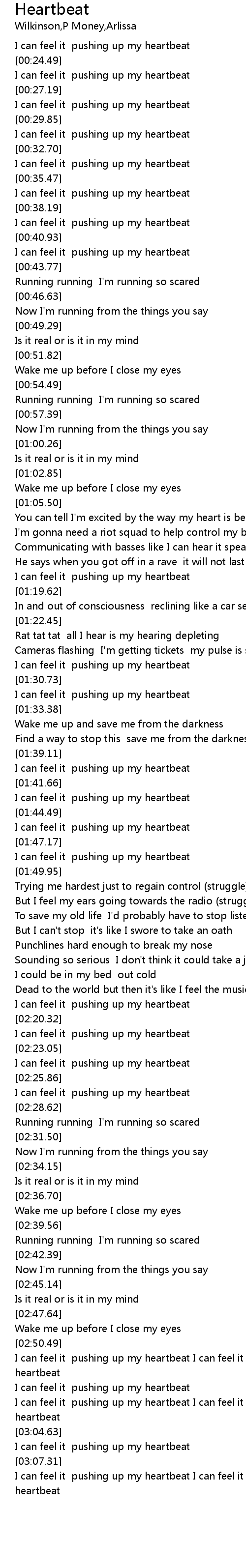 | [02:59.71] | I can feel it pushing up my heartbeat I can feel it pushing up my heartbeat |
