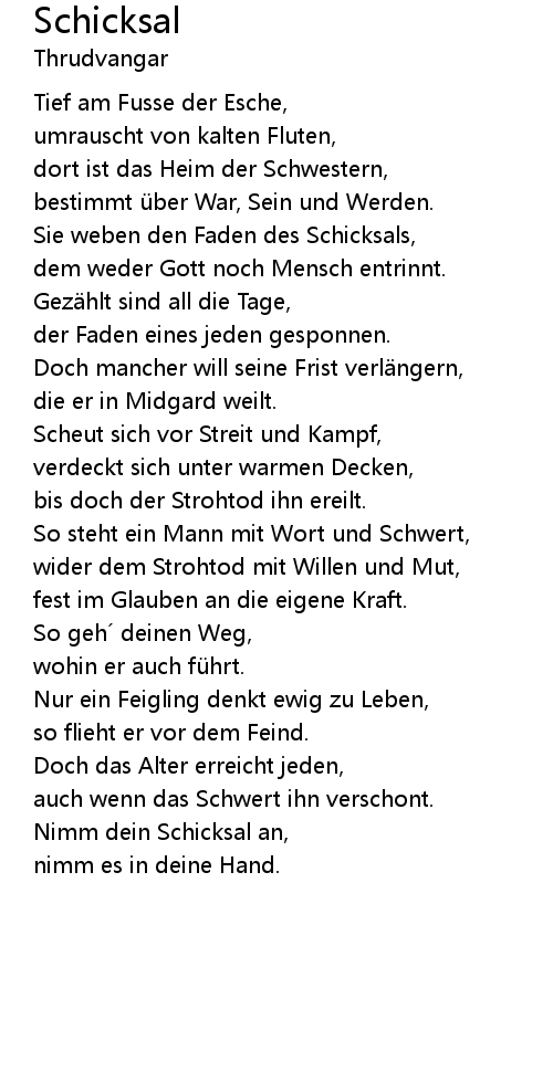 | Nimm dein Schicksal an, | |
