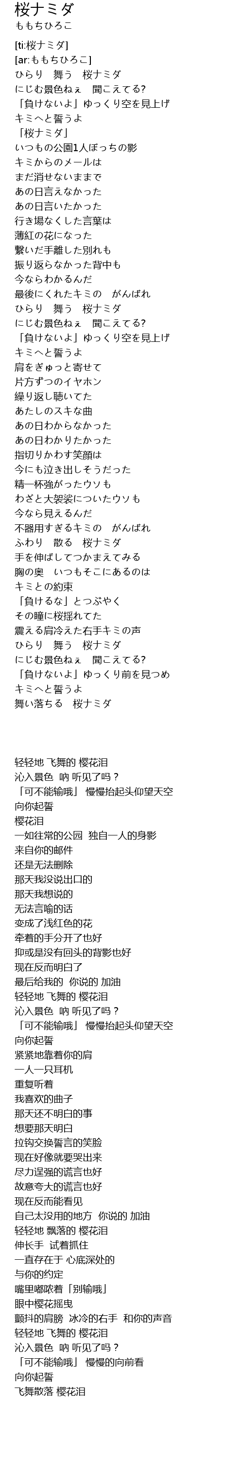 | [03:22.314] | 轻轻地 飘落的 樱花泪 |