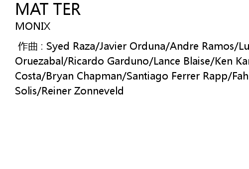 | [00:00.000] | 作曲 : Syed Raza/Javier Orduna/Andre Ramos/Lui Urbano/Iñigo Oruezabal/Ricardo Garduno/Lance Blaise/Ken Karter/Roberto Espinosa/Angel Costa/Bryan Chapman/Santiago Ferrer Rapp/Fahad Ahmad/Miroslav Pajic/Orlando Solis/Reiner Zonneveld |