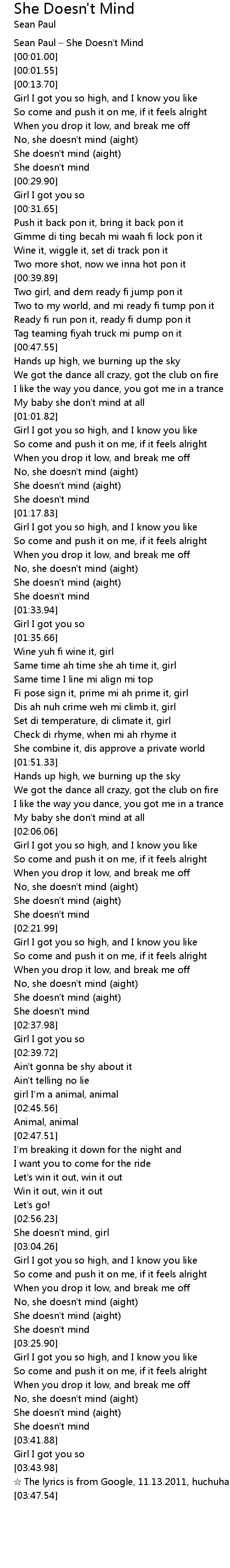 | [00:00.00] | Sean Paul – She Doesn't Mind |