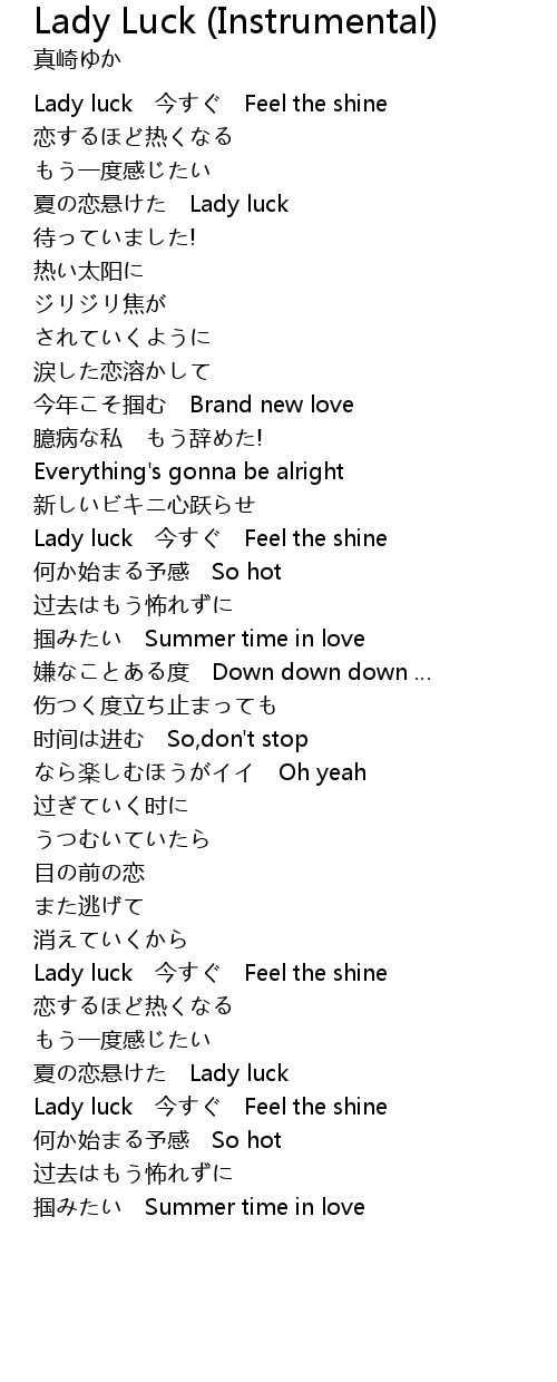 | [00:15.904] | Lady luck 今すぐ Feel the shine |
