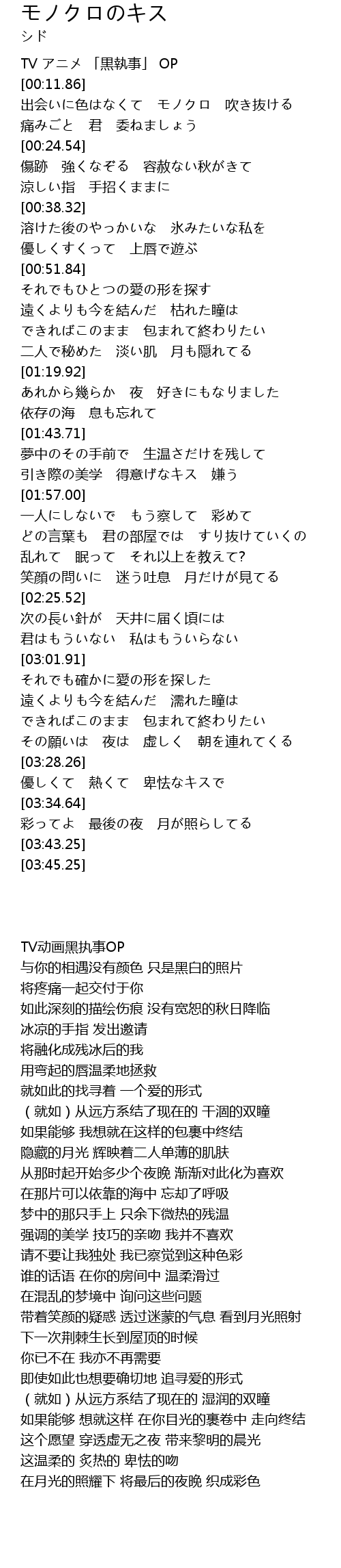 | [00:04.86] | TV アニメ 「黒執事」 OP |