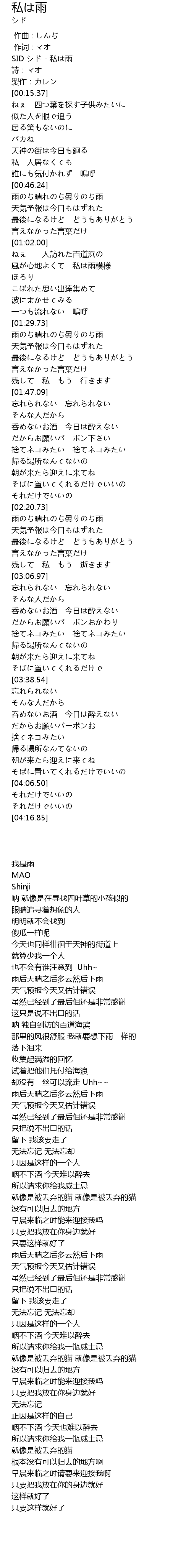 | [00:46.35] | 雨のち晴れのち曇りのち雨 |