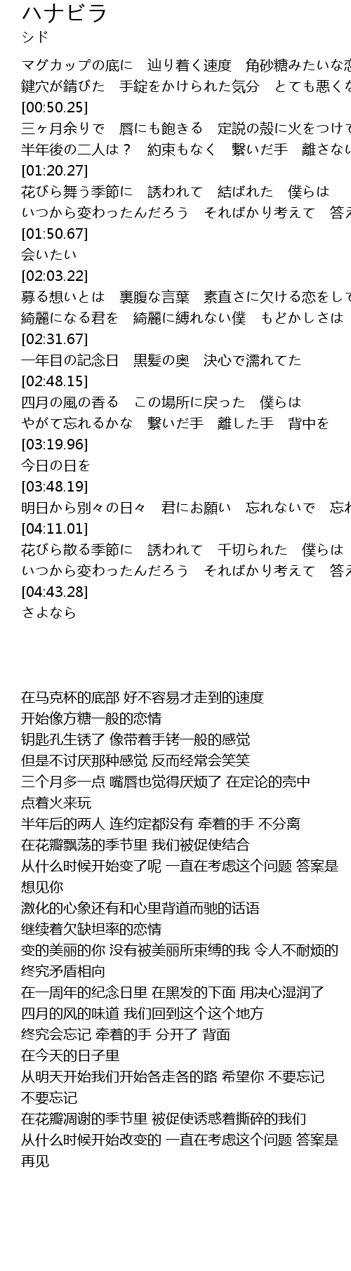 | [04:09.02] | 花びら散る季節に 誘われて 千切られた 僕らは |