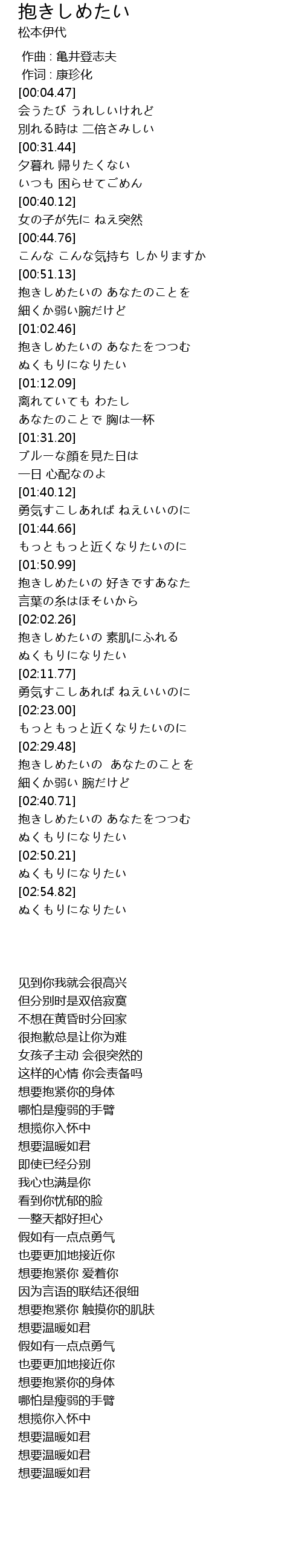 | [02:31.85] | 想要抱紧你的身体 |