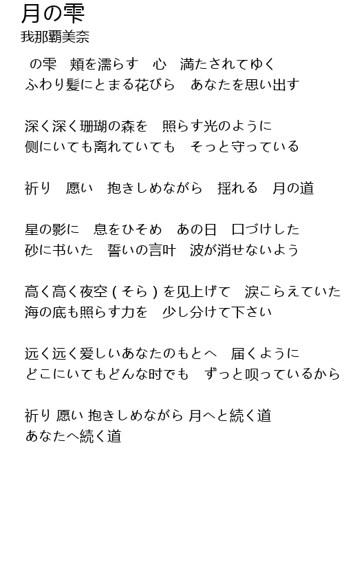 | 祈り 愿い 抱きしめながら 揺れる 月の道 | |