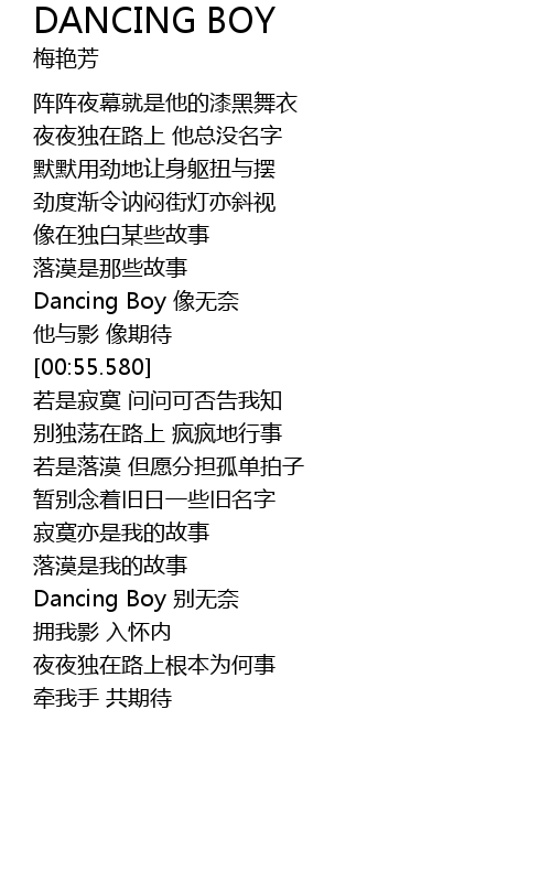| [00:44.740] | Dancing Boy 像无奈 |