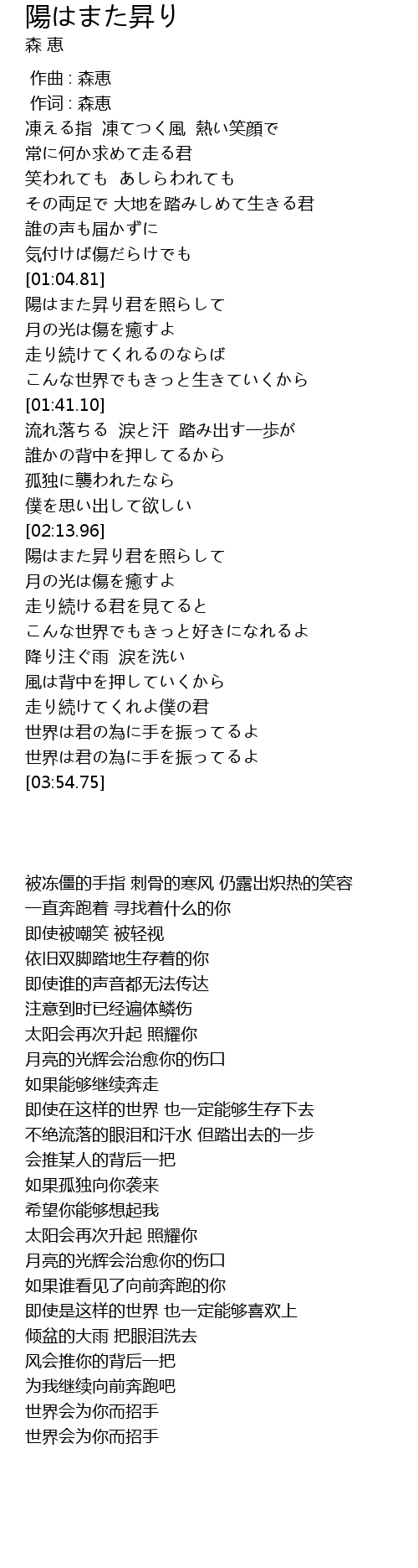 | [02:49.28] | 陽はまた昇り君を照らして |