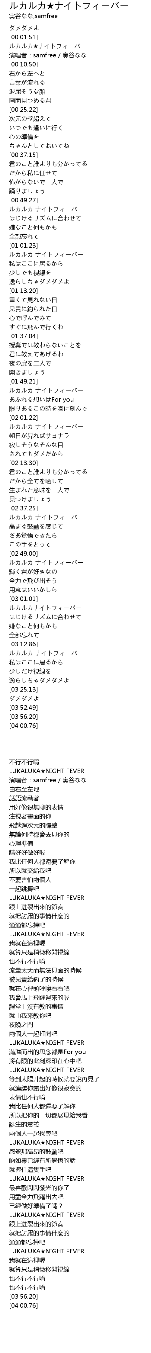 | [03:13.33] | LUKALUKA★NIGHT FEVER |