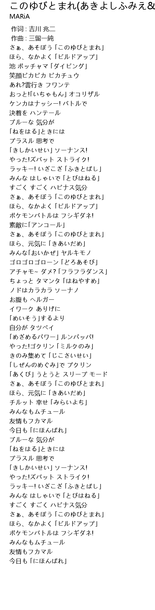 | 歌曲 | このゆびとまれ(あきよしふみえ&ポケモンキッズ2008) |