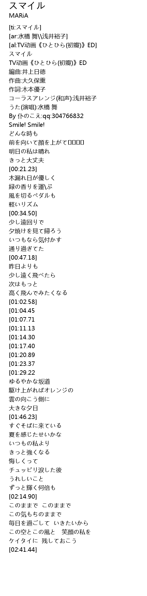 | [00:05.00] | コーラスアレンジ(和声):浅井裕子 |