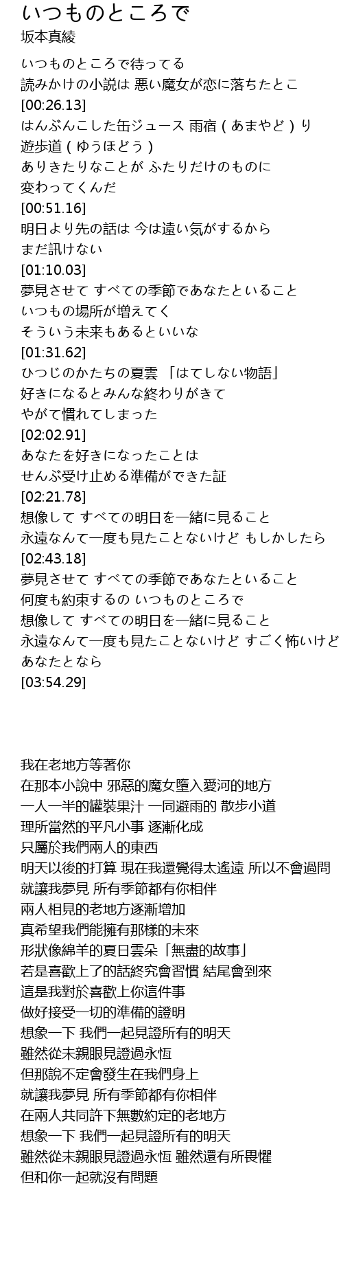 | [03:15.86] | 何度も約束するの いつものところで |