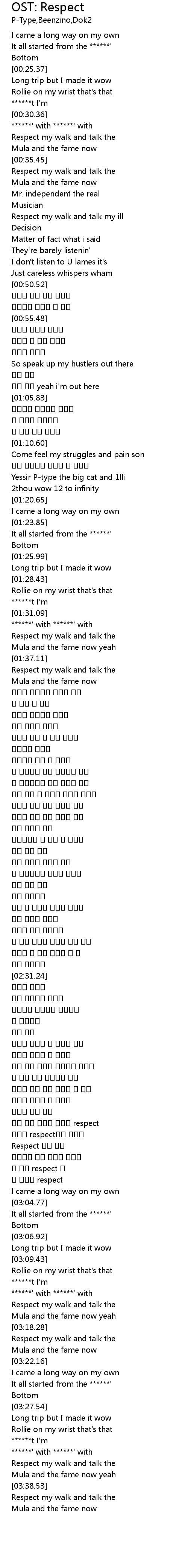 | [02:51.53] | 다들 이미 수백번 외쳐댄 respect |