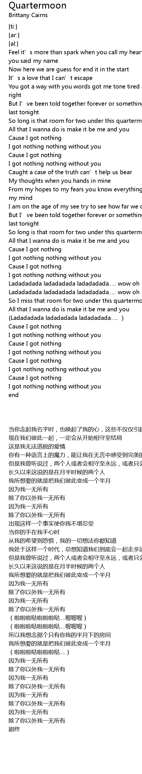 | [00:55.96] | 我所想要的就是把我们彼此变成一个半月 |