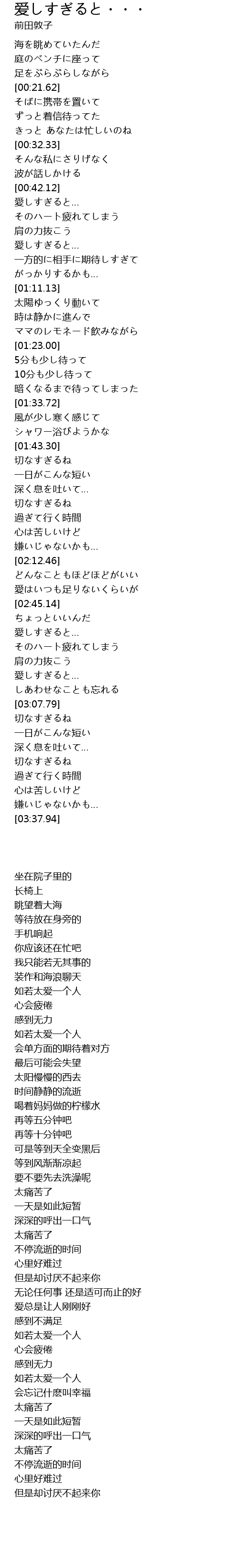 | [00:43.33] | 愛しすぎると… |