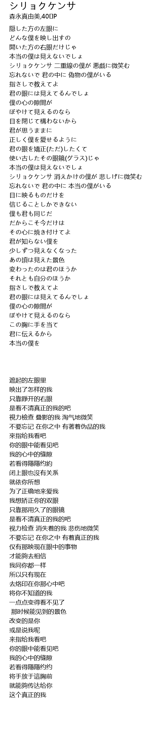 | [00:37.20] | 視力檢查 叠影的我 淘气地微笑 |