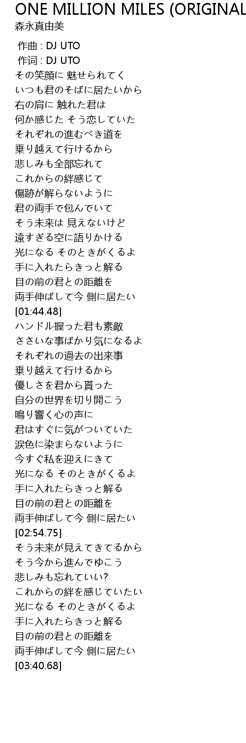 | 歌曲 | ONE MILLION MILES (ORIGINAL VER) |