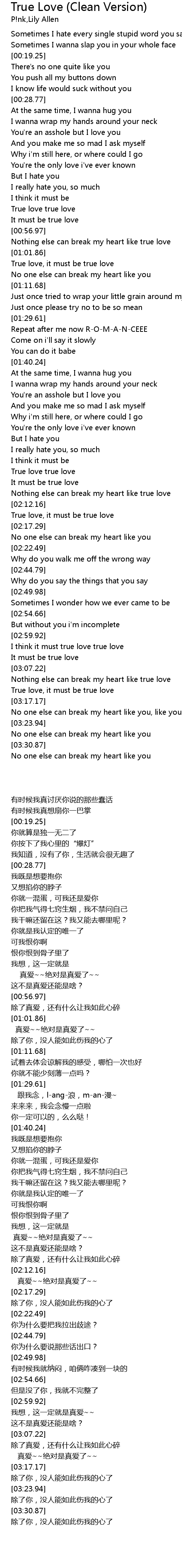True Love (Clean Version) 歌词