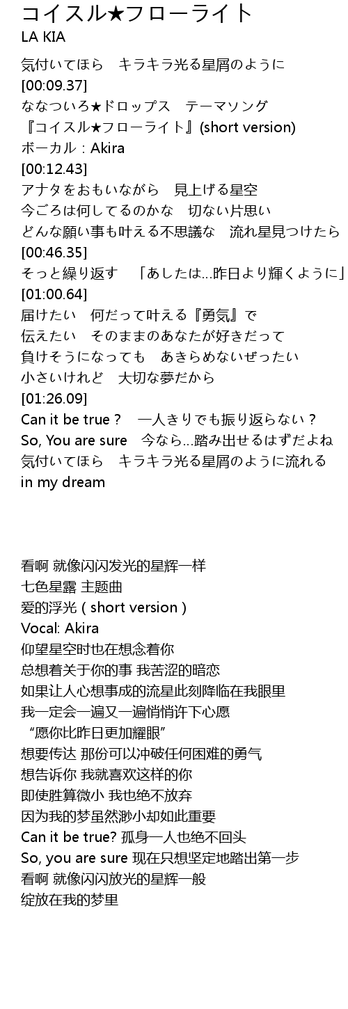 | [00:10.44] | 『コイスル★フローライト』(short version) |