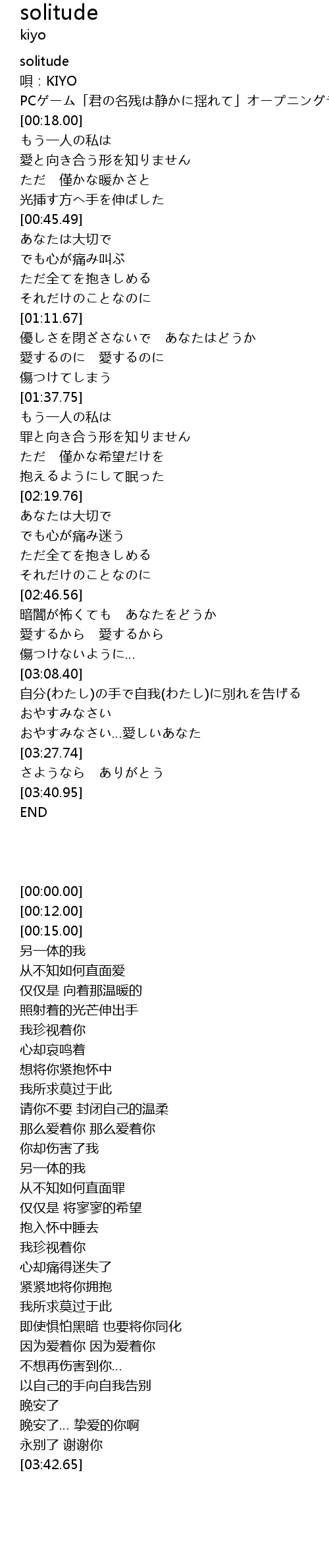 | [00:15.00] | PCゲーム「君の名残は静かに揺れて」オープニングテーマ |