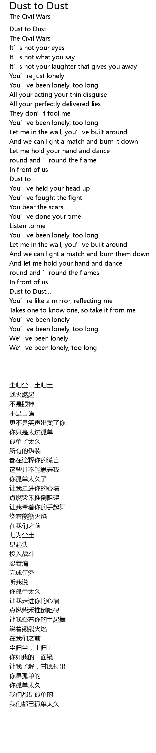 | 歌曲 | Dust to Dust |