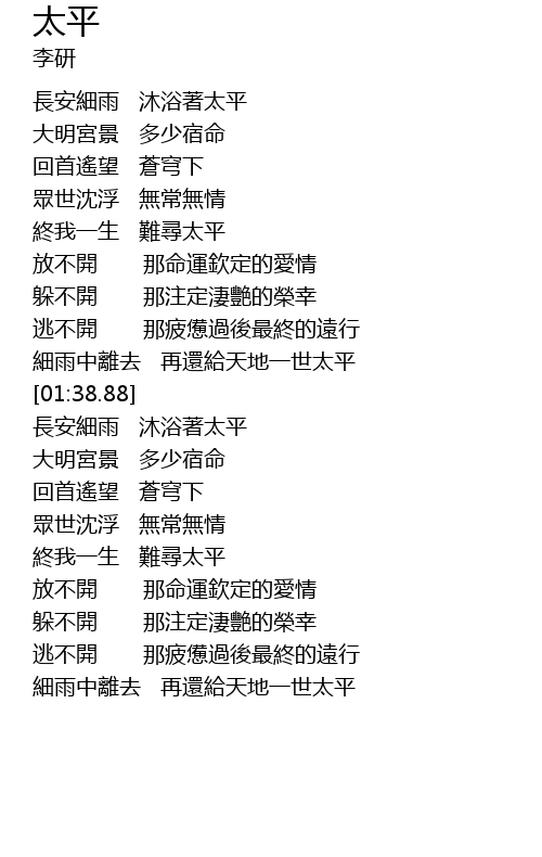 | [01:46.19] | 長安細雨 沐浴著太平 |
