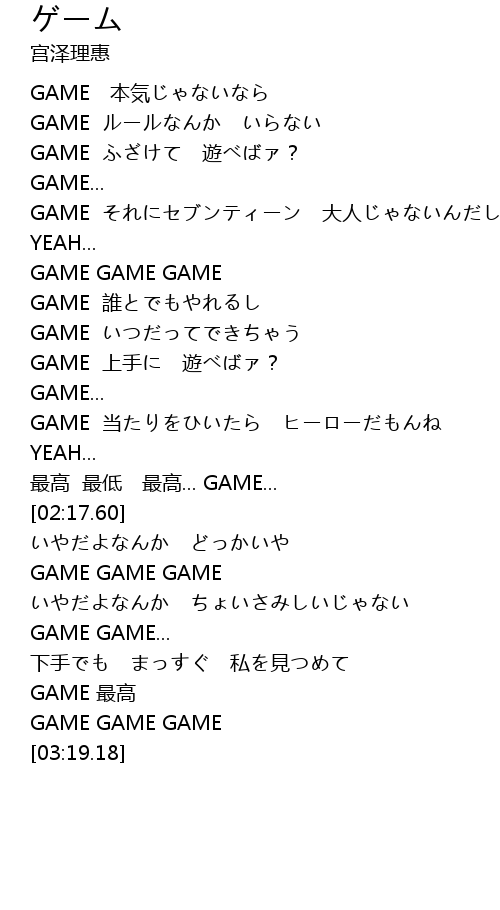 | [00:54.23] | GAME それにセブンティーン 大人じゃないんだし |