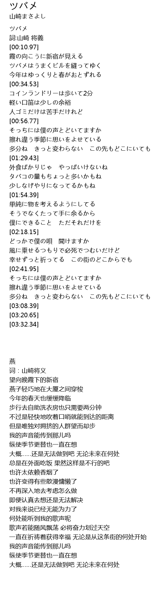 | [00:18.85] | ツバメはうまくビルを縫ってゆく |