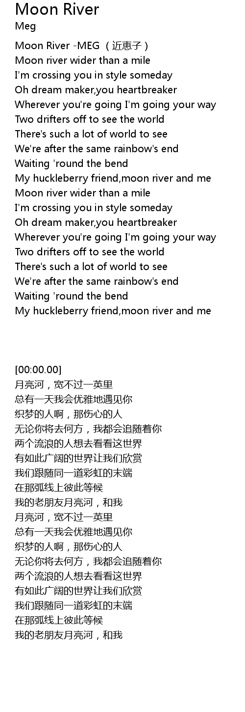 | [00:00.00] | Moon River MEG jìn huì zi |