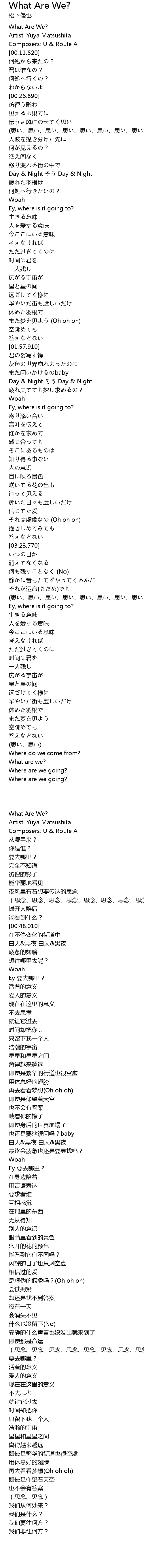 | 歌曲 | What Are We? |