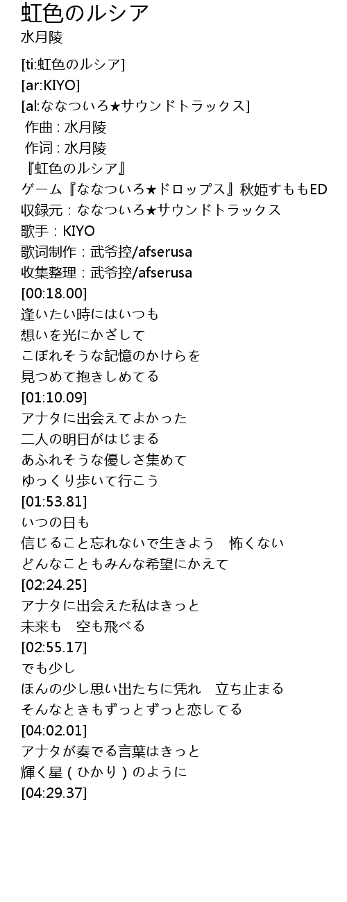 | [00:02.00] | ゲーム『ななついろ★ドロップス』秋姫すももED |
