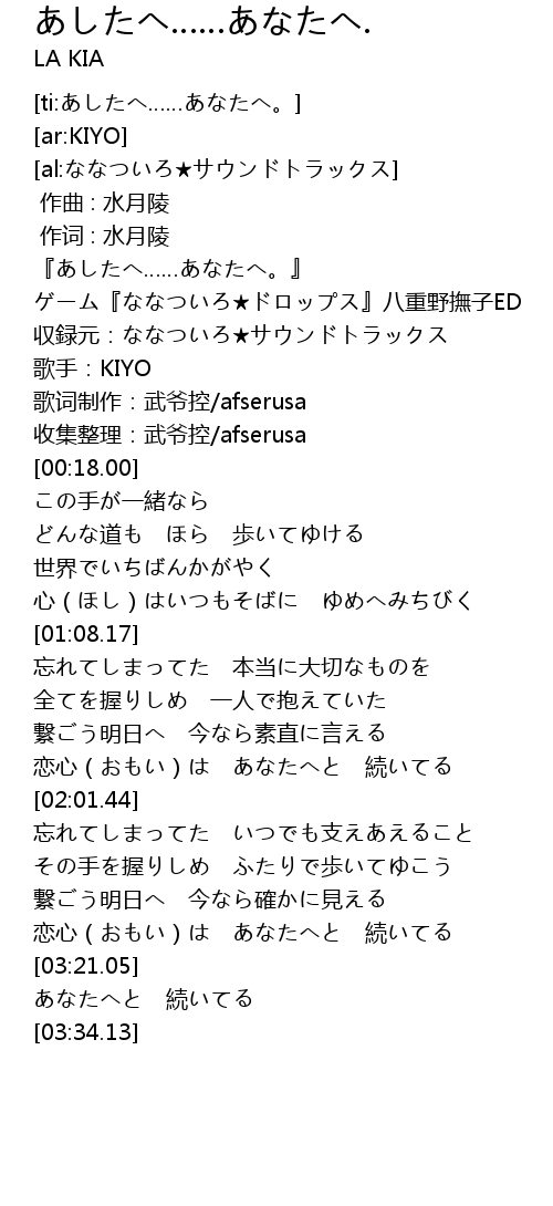 | [ti:あしたへ……あなたへ。] | |