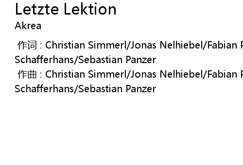 | [00:00.000] | zuo qu : Christian Simmerl Jonas Nelhiebel Fabian Panzer Stephan Schafferhans Sebastian Panzer |