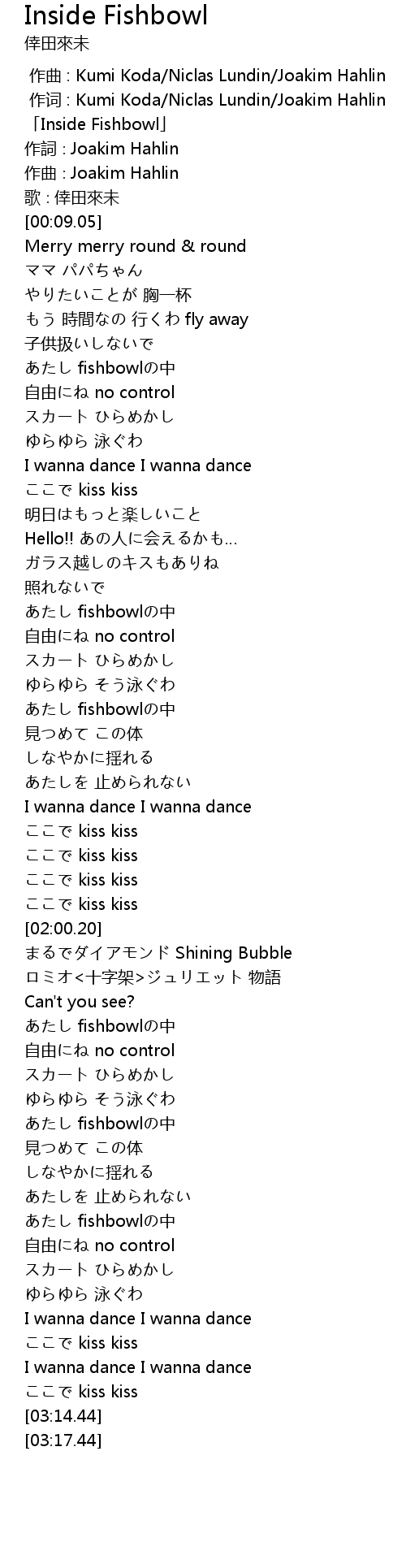 | [00:00.335] | zuò cí : Kumi Koda Niclas Lundin Joakim Hahlin |