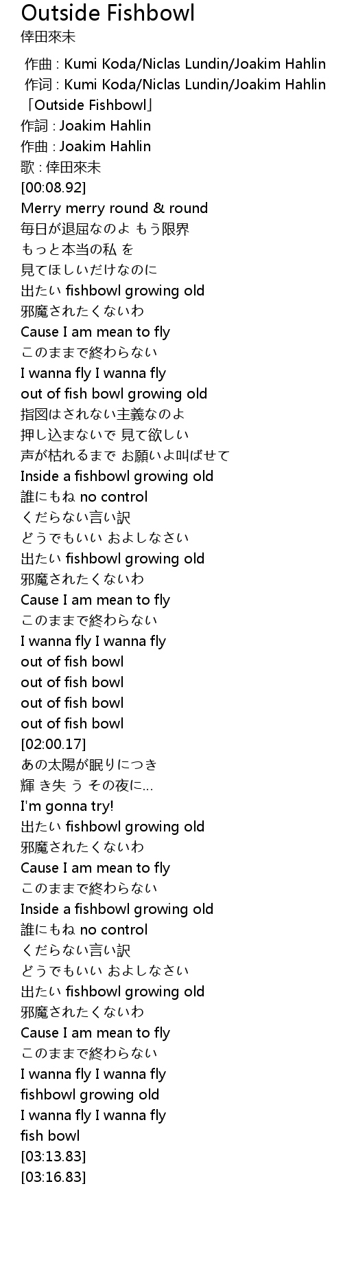 | [00:00.00] | zuò qǔ : Kumi Koda Niclas Lundin Joakim Hahlin |