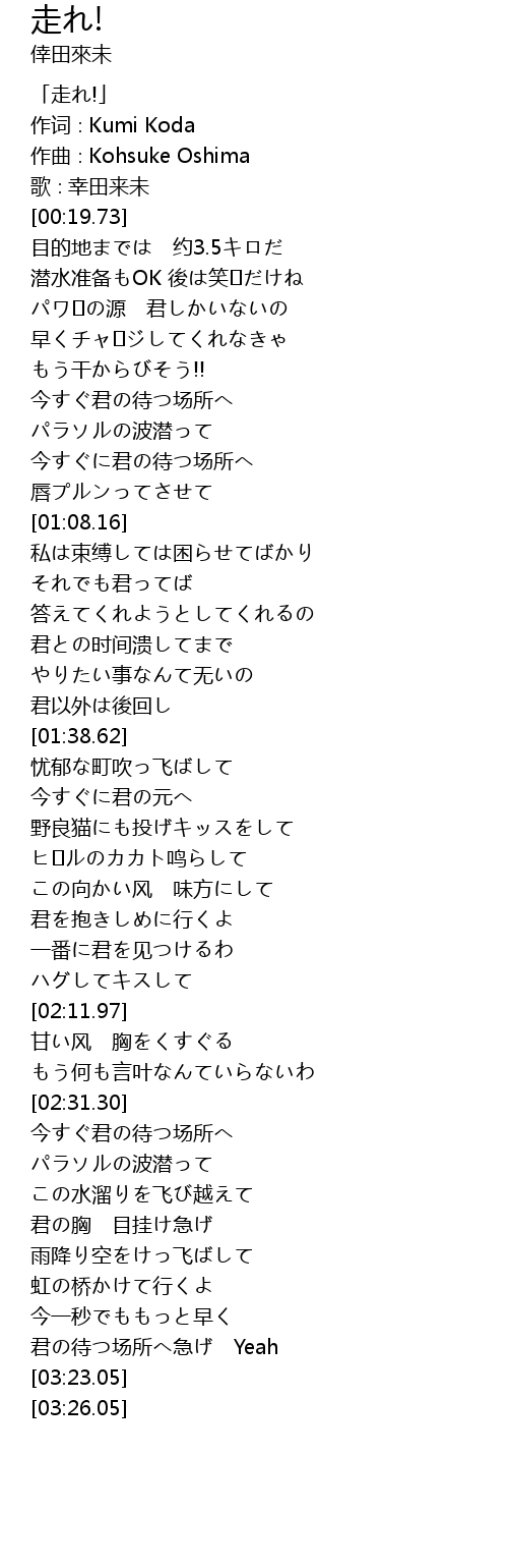 | [03:17.65] | 君の待つ场所へ急げ Yeah |
